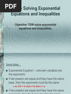 Solving Exponential Equations With Exponents On Both Sides Youtube from i.ytimg.com When solving exponential equations, we gotta make sure to identify the common factors among all the bases and rewrite them in terms of the same base. We identify the exponent, latexx/latex, and the argument, latex2^{x}/latex, and rewrite the equivalent expression by multiplying the exponent times the logarithm of the argument, latex2/latex. Feb 14, 2020 · def equation(y,x): First rewrite each side of the equation using the same base. Finally, all we need to do is solve for x x. How to find an exponential equation? Using the property of the exponents, multiply the powers of each base. Apr 26, 2021 · log a r = r log a {\displaystyle {\text {log}}a^ {r}=r {\text {log}}a}.